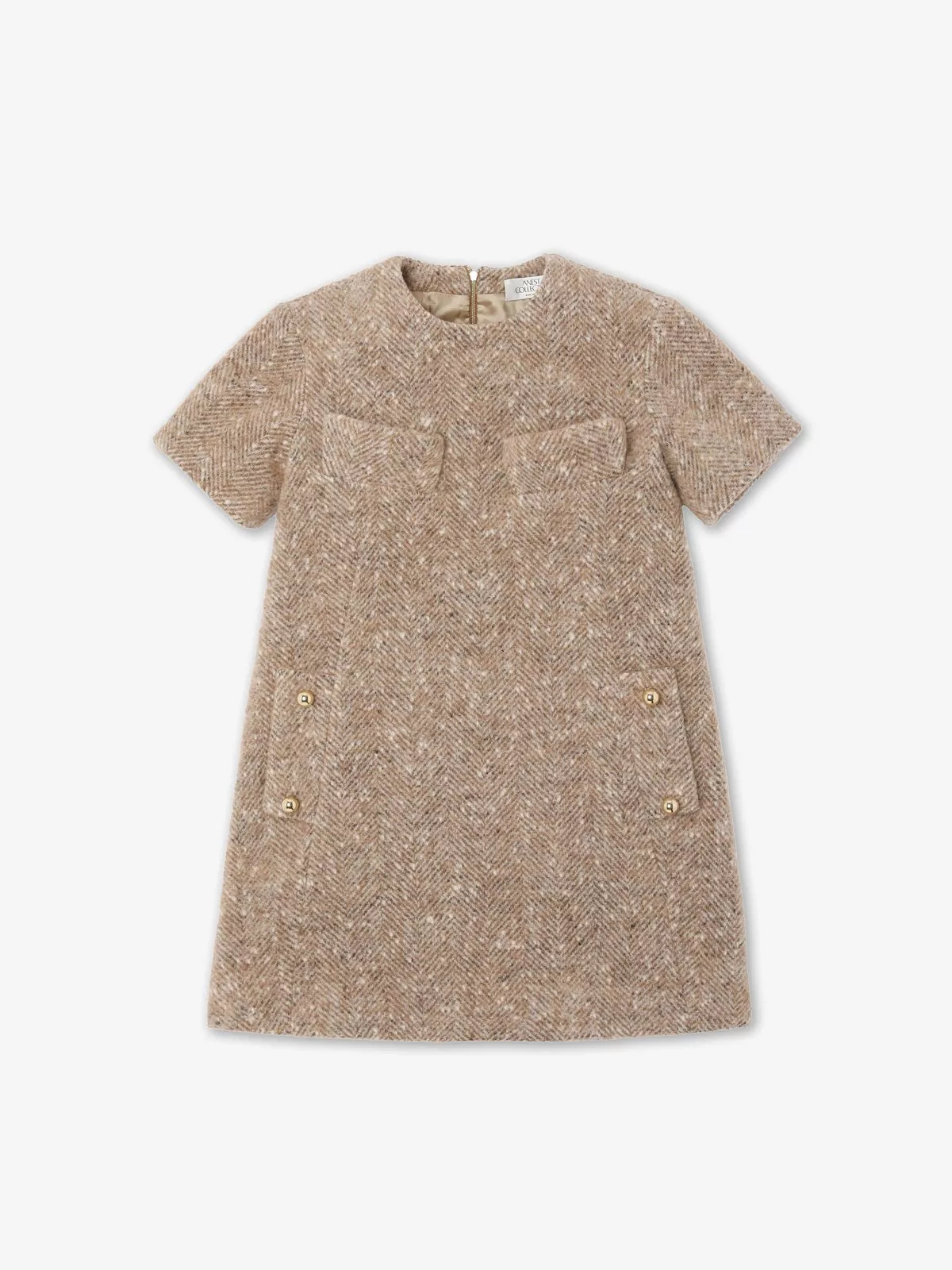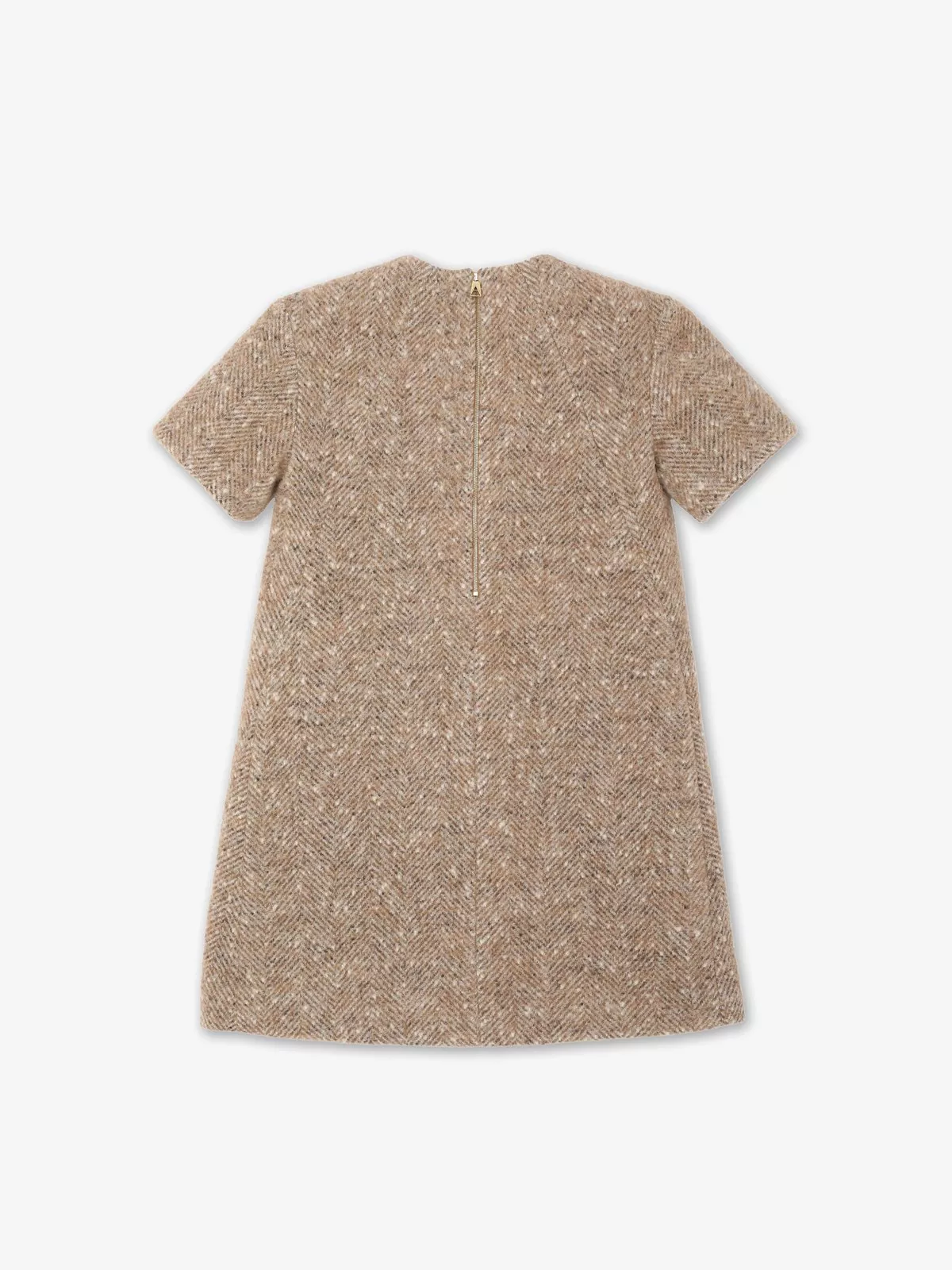 奶白白兰地混色人字纹婴羊驼毛羊毛混纺连衣裙「限量12件」
