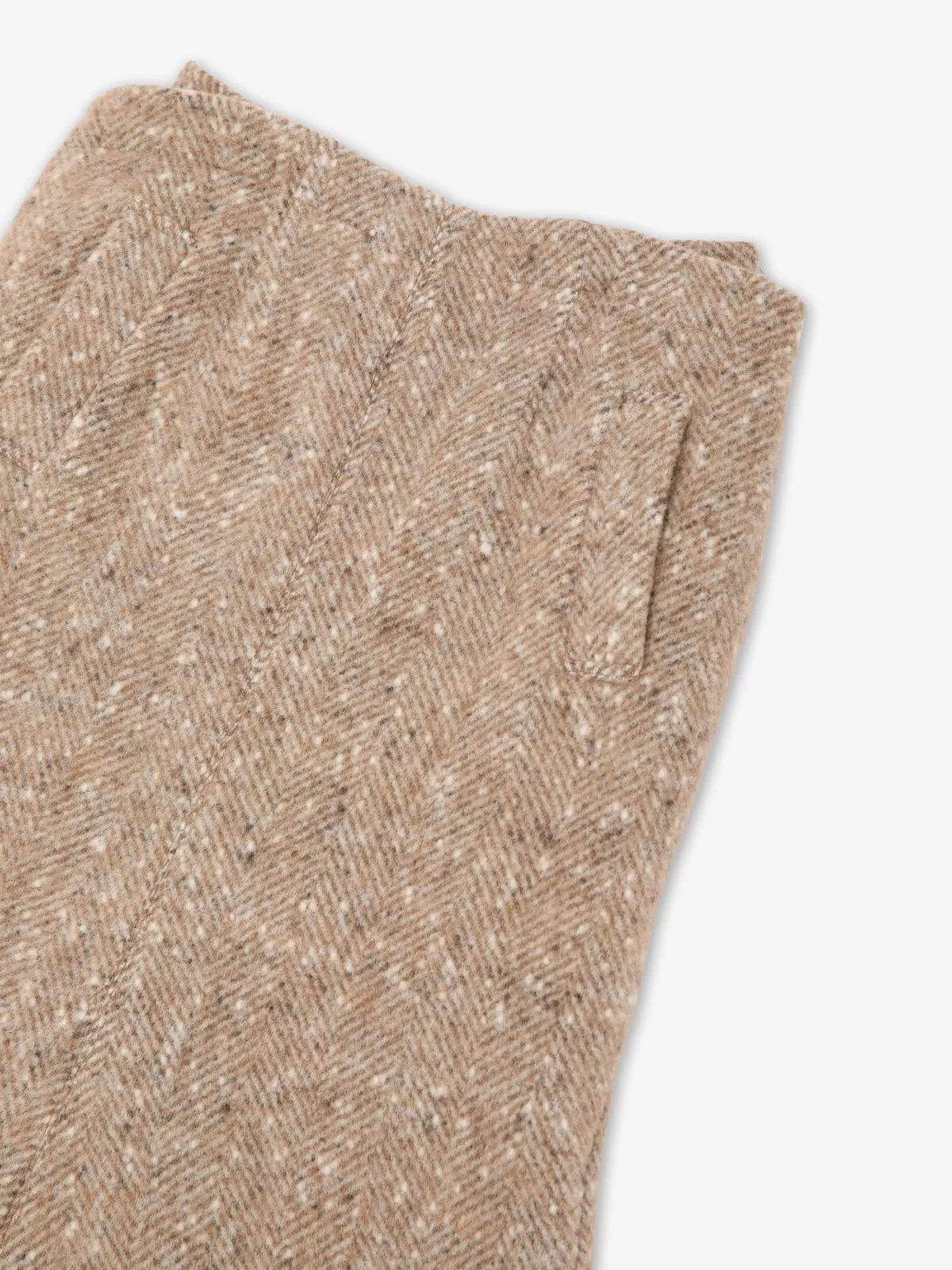 专为日常 versatile(多场景适配)设计,适合职场、商务会议与精致休闲场合。经典人字纹面料与适中中长款设计,既适配职场,又能满足晚餐、周末聚会等社交需求。搭配衬衫、针织上衣或衬衫,无需复杂造型即可打造精致感,人字纹面料更添经典优雅气息。