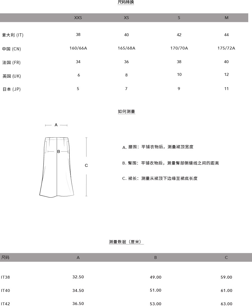 腰头全包边设计确保结构感,半裙全内衬且下摆内衬游离,营造自然垂坠动感。