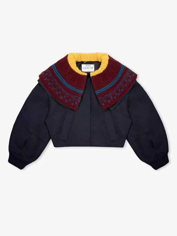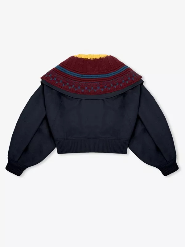 黑色/海军蓝双色双面羊绒茧型夹克(配针织领)「限量6件」