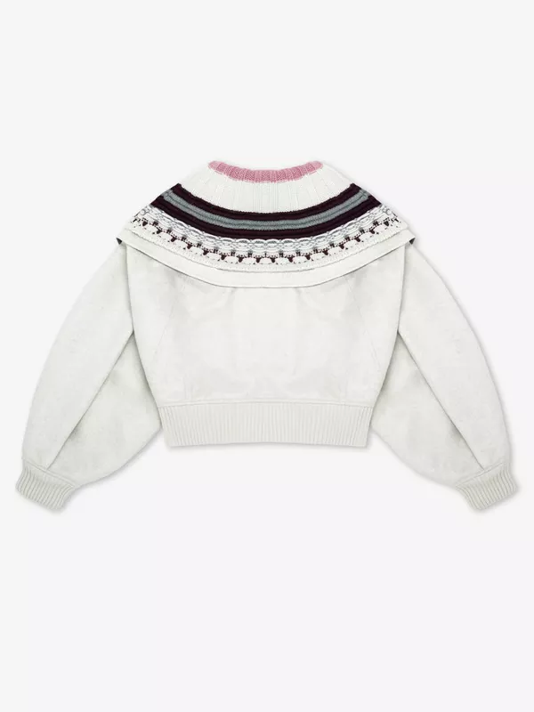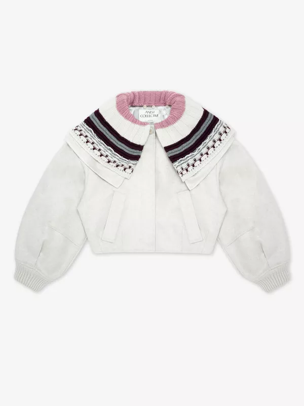灰色/珍珠白双色双面羊绒茧型夹克(配针织领)「限量5件」