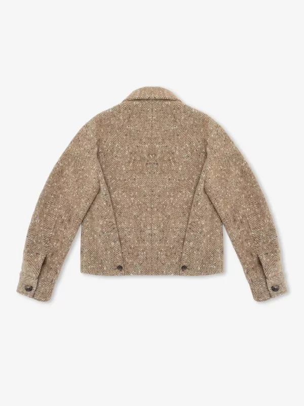 奶白白兰地混色人字纹羊驼毛混纺夹克「限量3件」