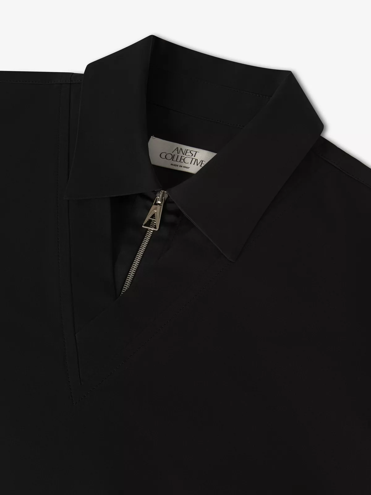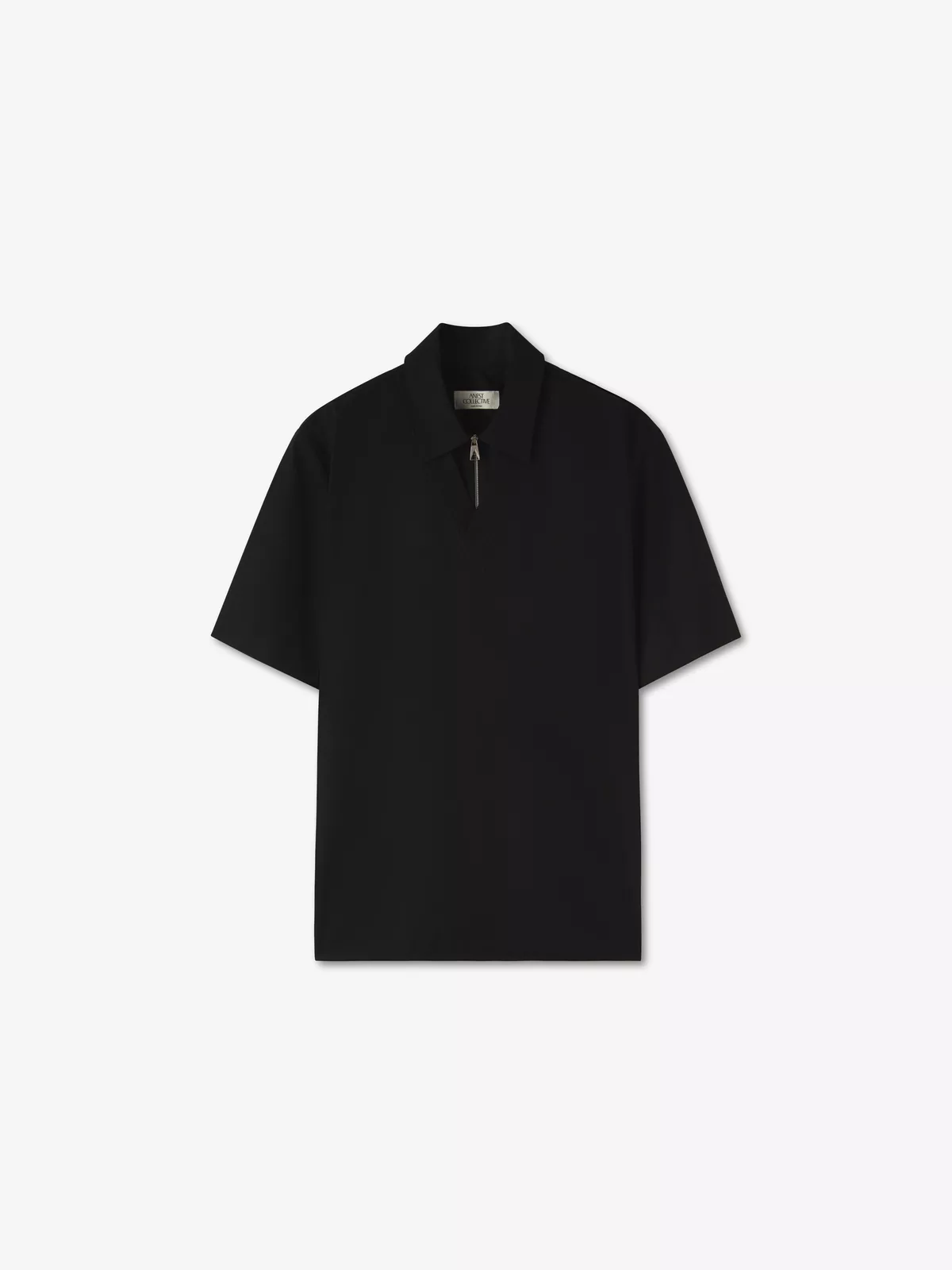This Polo top is crafted in a fine cotton popeline, it features a boxy fit, a double collar and a front zip metal closure.