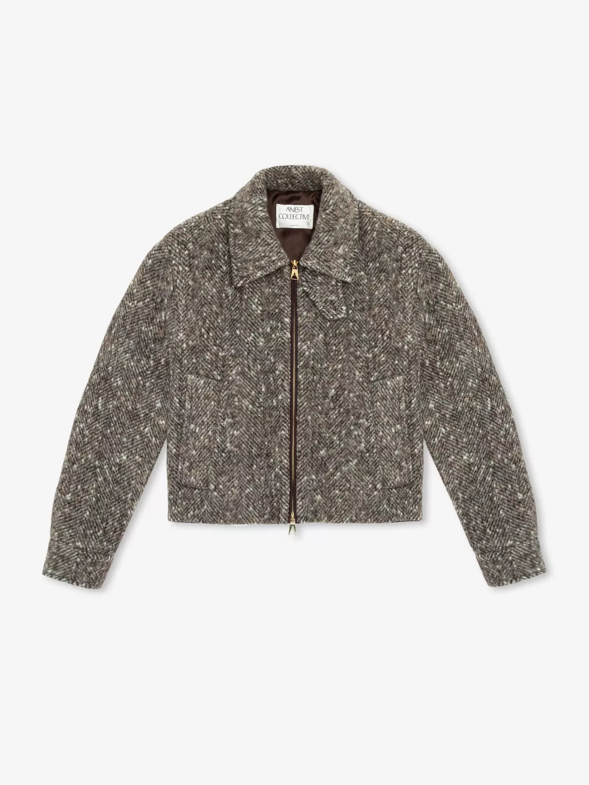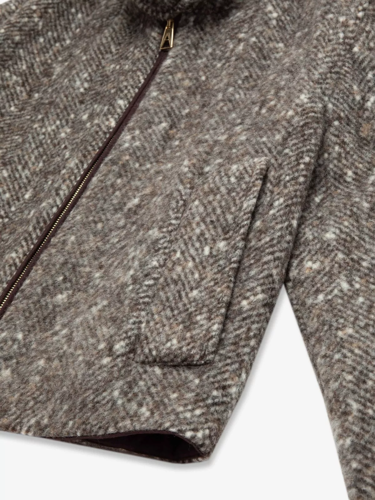 HARRINGBONE BABY ALPACA WOOL BLEND BLOUSON IN MILK BROWN MELANGE「Only 6 PCs」