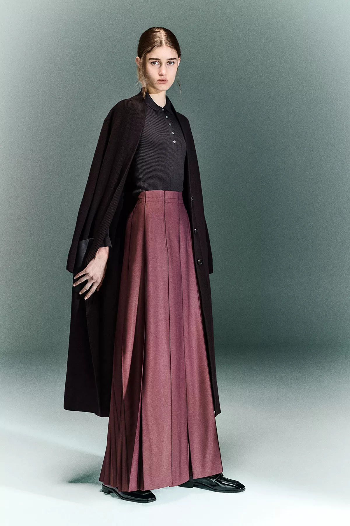 这款优雅的百褶长裙由桑蚕丝混纺面料在意大利精心制作而成,中腰设计,完美合衬地。