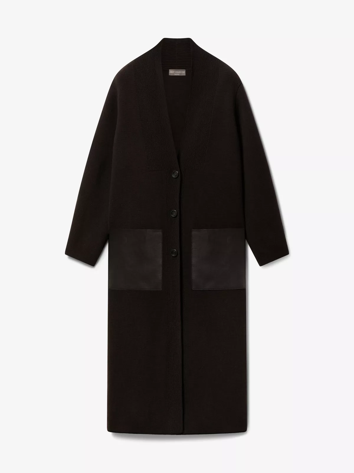 苦巧克力色羊毛混纺开襟毛衣