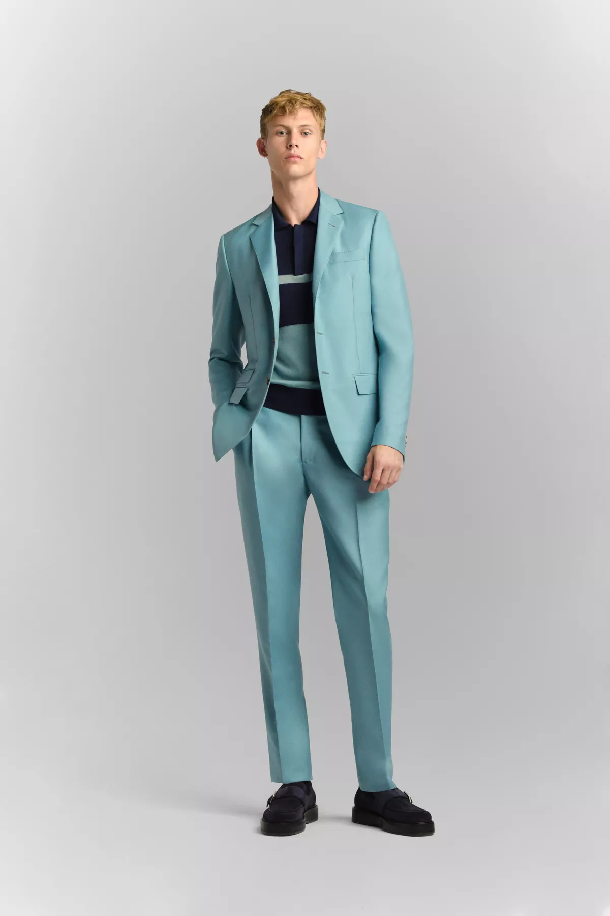 This Knitted Polo is made from a luxurious silk and cotton yarn. It features a color block with a mix of stiches and hidden buttoning.