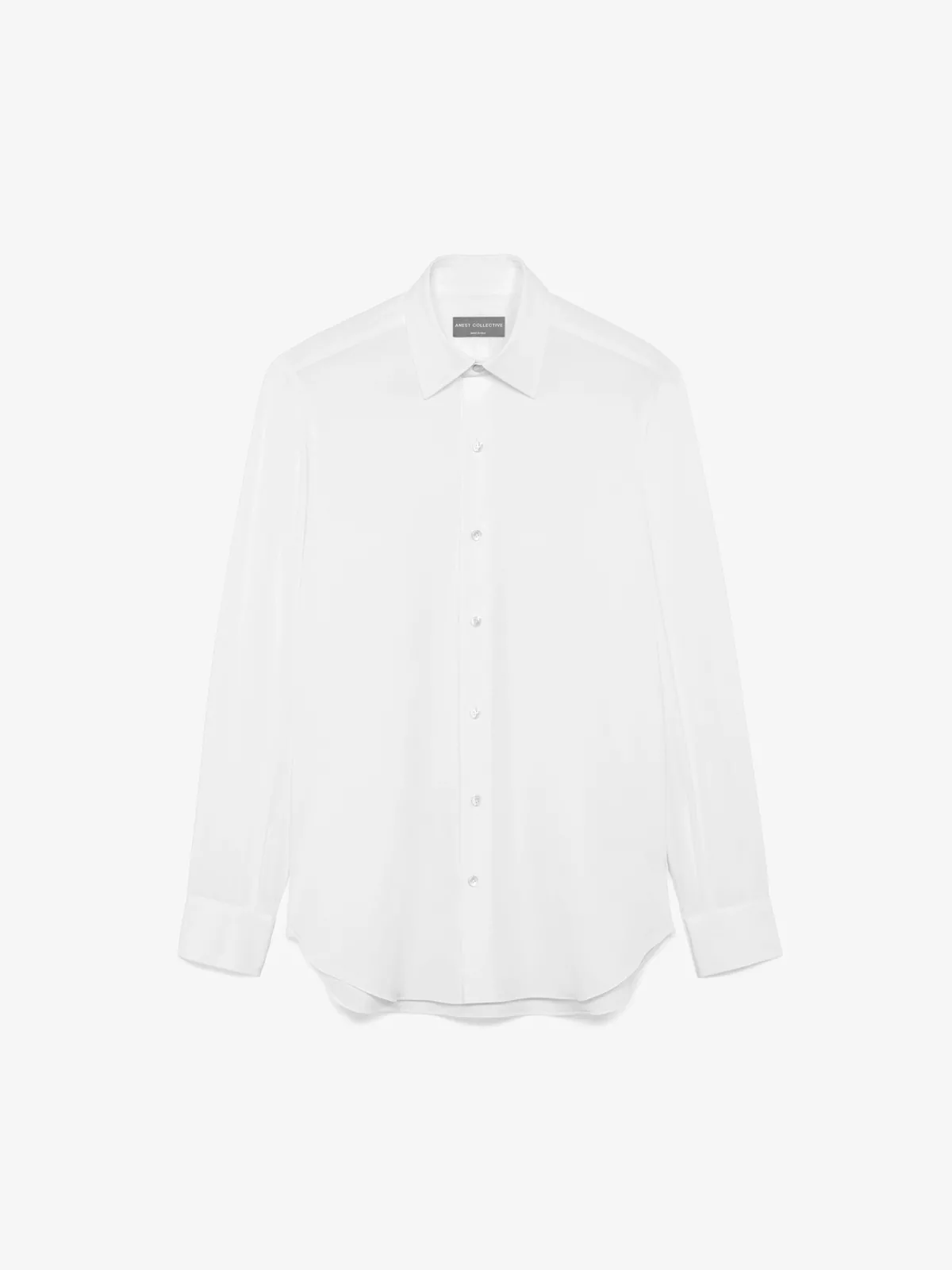 This formal shirt is made from a cotton poplin, with classic cuffs, a pointed collar and a mother-of-pearl-buttoned placket.