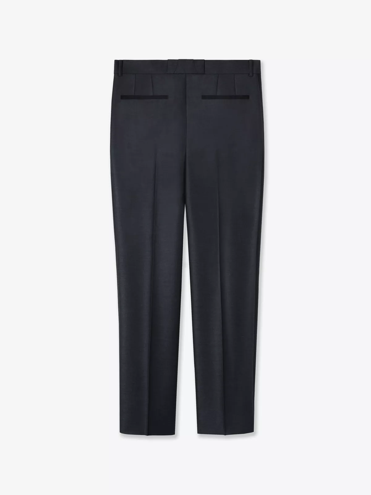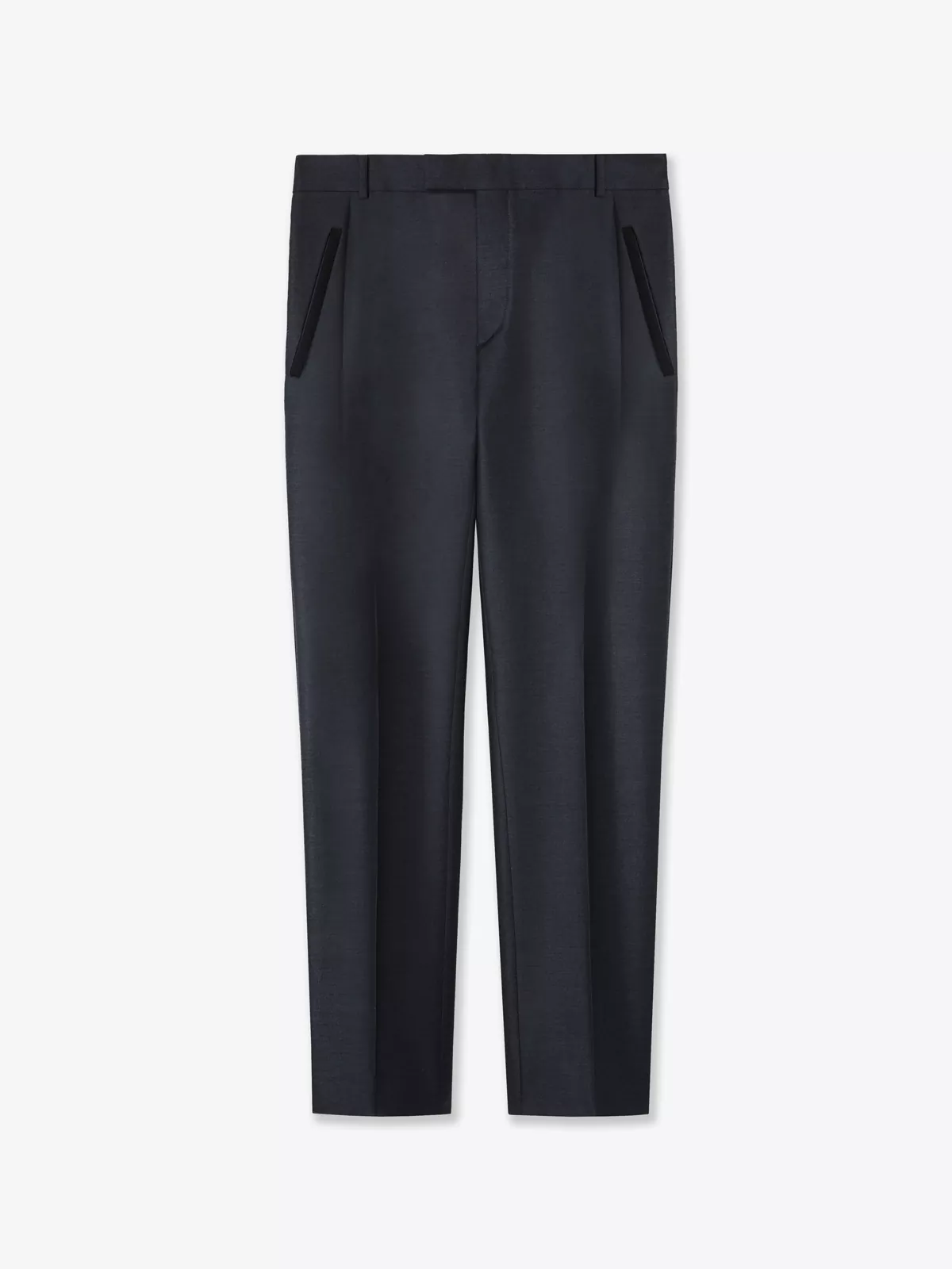 These straight-fit trousers are made from a wool-mohair-blend twill suiting fabric with binding detailing and cut to a tapered silhouette with single front-pressed pleats.