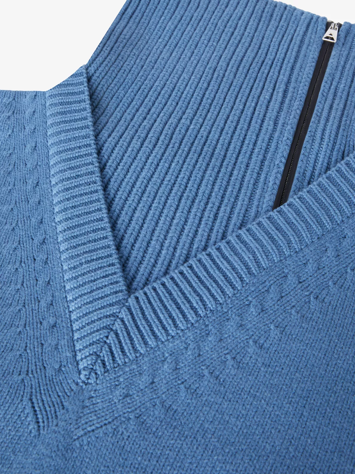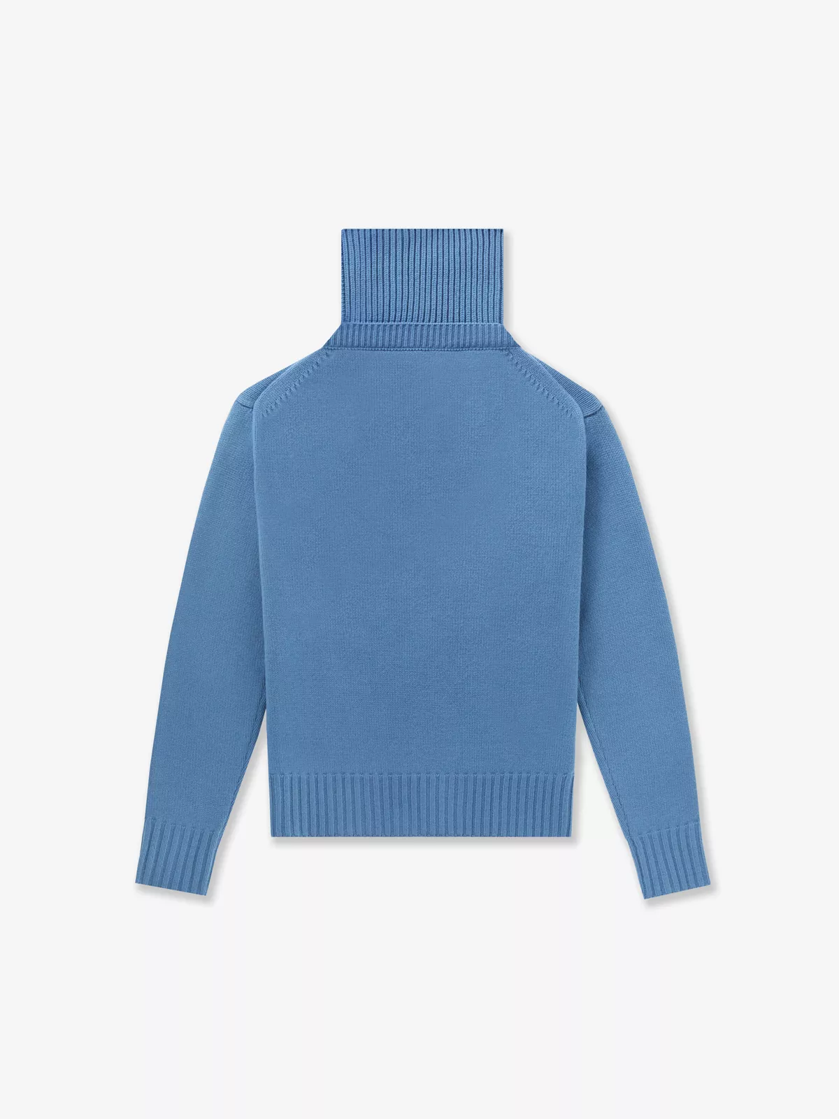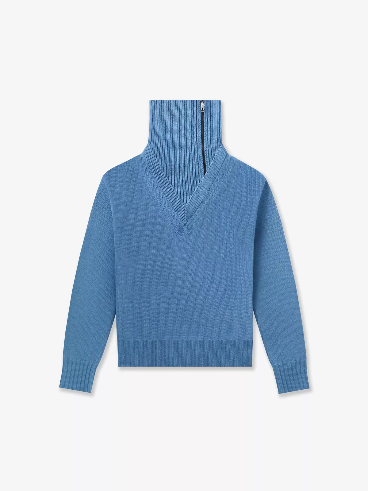 WOOL-BLEND DOUBLE-COLLAR SWEATER IN SMOKED PRUSSIAN