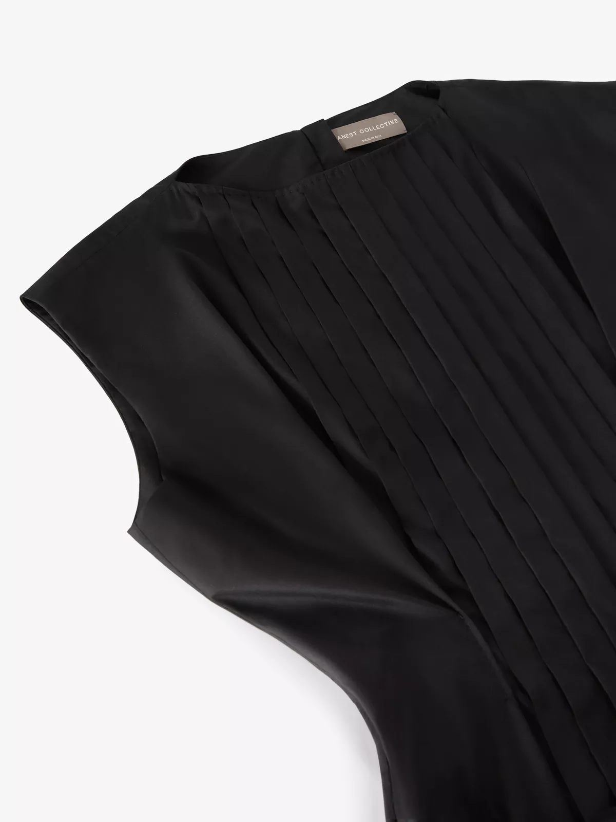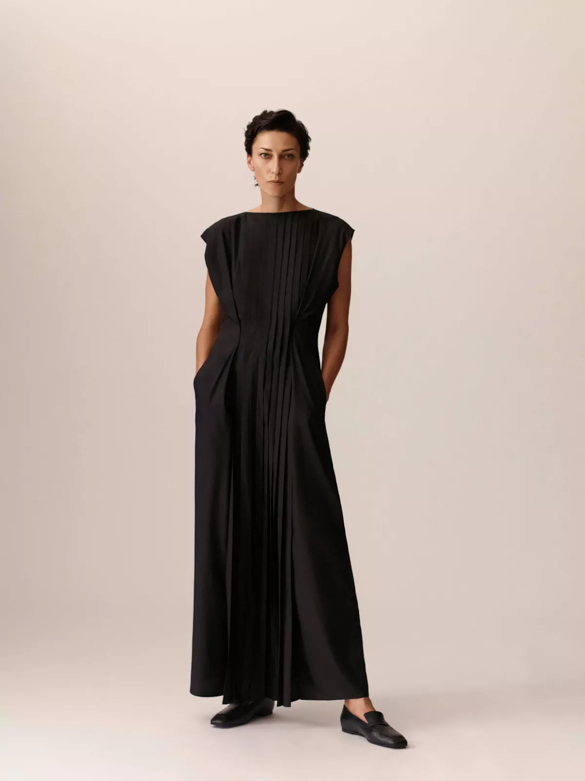 This tunic-style maxi dress has been made from a silk blend with a pleated front panel and cut to a slim fit.